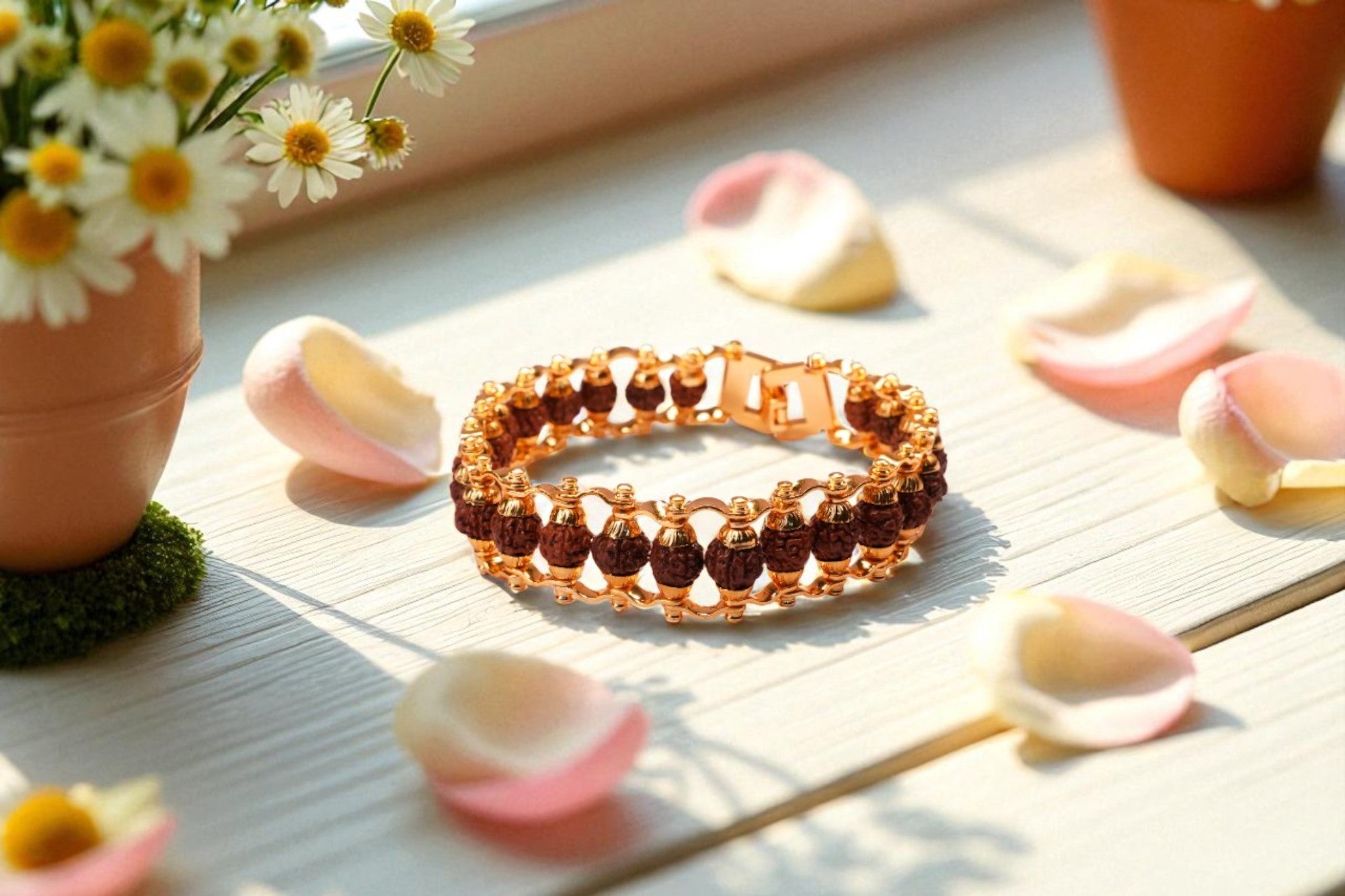 Gold Plated Modern Rudraksha Bracelet By Nirvana Finds